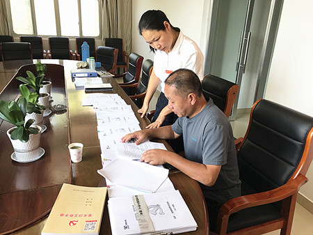 圖為黨群部主任邵克正在檢查黨建臺(tái)帳