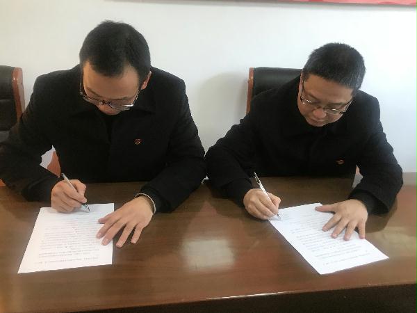 圖為黨支部書記與班長簽訂黨風(fēng)廉政責(zé)任書