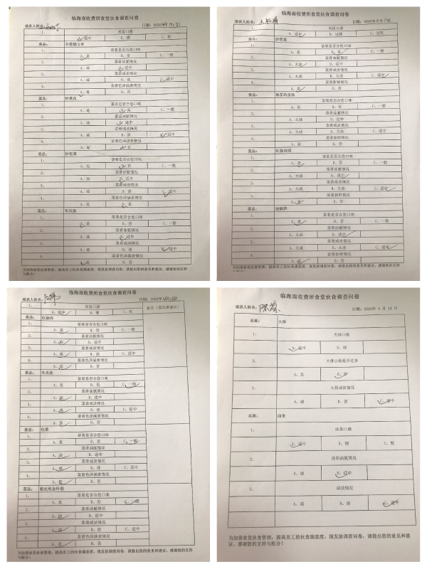 為了提高食堂滿意度,該所菜肴口味、油膩度、咸淡、色澤等方面制定調(diào)查問卷,大家真實(shí)客觀地表達(dá)各自的想法和建議。問卷調(diào)查采用當(dāng)班用餐人員實(shí)名填寫問卷調(diào)查表的形式進(jìn)行,通過收集的問卷,每天中午定期召集食堂人員,反饋前一天的調(diào)查結(jié)果,根據(jù)員工的反饋建議,討論制定整改措施,確保將員工的意見及建議落到實(shí)處。除此之外,每逢傳統(tǒng)佳節(jié),定制相應(yīng)的節(jié)日菜譜,保證員工在站所也能感受到節(jié)日的喜慶和家的溫馨。