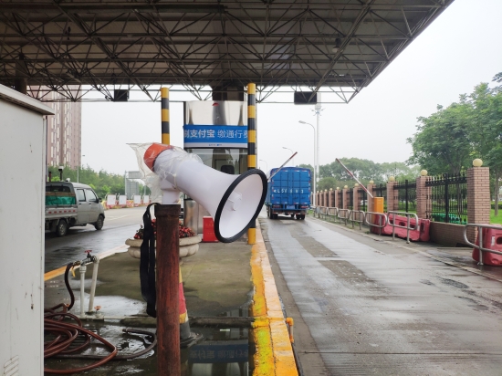圖為入口處放置的語(yǔ)音警報(bào)小喇叭 在嚴(yán)把入口關(guān)中,該所要求入口必須有人員在崗,履行“一崗雙職”的重任,時(shí)刻關(guān)注入口情況,及時(shí)發(fā)現(xiàn)并勸阻違規(guī)車(chē)輛和人員的進(jìn)入。此外,入口顯眼處懸掛“請(qǐng)珍愛(ài)生命,禁止行人和非機(jī)動(dòng)車(chē)上高速”的警示標(biāo)語(yǔ)。入口處增添放置的管控小助手---語(yǔ)音警報(bào)器,循環(huán)播放普通話(huà)和方言警示標(biāo)語(yǔ):“行人、自行車(chē)、摩托車(chē)禁止上高速公路”。入口安全島頭和邊溝處放置水碼,防止行人、摩托車(chē)、電動(dòng)車(chē)和自行車(chē)從邊溝處和超寬車(chē)道進(jìn)入高速。而由維養(yǎng)中心人員在入口高處安裝的攝像裝置,只要行人、自行車(chē)等非機(jī)動(dòng)車(chē)輛出現(xiàn)在攝像范圍內(nèi),就會(huì)立刻傳來(lái)“警戒區(qū)域,請(qǐng)盡快離開(kāi)”的持續(xù)性警報(bào)聲。在人員的管控和設(shè)備的警示下,收費(fèi)所入口安全不斷地提升。