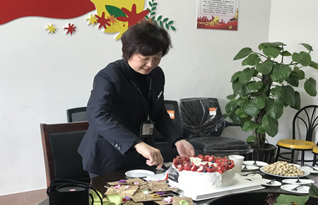 圖為陶秀英同志在歡送會現(xiàn)場切蛋糕 歡送會上,章海峰代表臺州高速,對陶秀英同志二十余年如一日為集團(tuán)發(fā)展所付出的辛勞和貢獻(xiàn)表示了衷心感謝,預(yù)祝她退休生活豐富多彩,也希望她退而不休,常回“家”看看。同時號召年輕員工學(xué)習(xí)陶秀英身上傳承勤勤懇懇、認(rèn)真踏實(shí)的態(tài)度與精神,為征費(fèi)管理共努力,為集團(tuán)發(fā)展共拼搏。