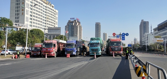 圖為所班子成員帶頭指揮交通 早上8點11分,接到監(jiān)控中心電話:入口開通,開足兩個人工車道。當時正值新收費模式開通前對稱重超限車輛勸返工作的開始。經(jīng)過幾個小時封道,此時的入口車流已經(jīng)一望無際,如果碰到超限車輛,勸返更是難上加難。 在困難中想對策,所領導班子成員提出“輪流式放行”:入口的車輛分別是從橋上和橋下過來,分為4個車道,每個車道輪流放行5分鐘,這樣井然有序,不容易造成擁擠和交通事故,并且可以快速放行。每個車道前都擺放了一個小紅帽,專人看守。其他人員分別在入口指揮,藍牌貨車和未安裝ETC的車輛從大小客車車道通行,大貨車從混合車道通行,裝有ETC的客車和集裝箱走ETC專用通道。大家不斷穿梭在車道、廣場之間,向司機一遍遍耐心解釋,指揮每一輛車順利通行。1名孕婦行動不便,被分在監(jiān)控室接聽電話,查詢?nèi)肟跓o信息的車道。所有人一身汗,忙得顧不上喝一口水,臨近飯點也沒有人主動去吃飯,大家都頂住壓力,從黎明到黃昏一心想著快速準確高效放行。