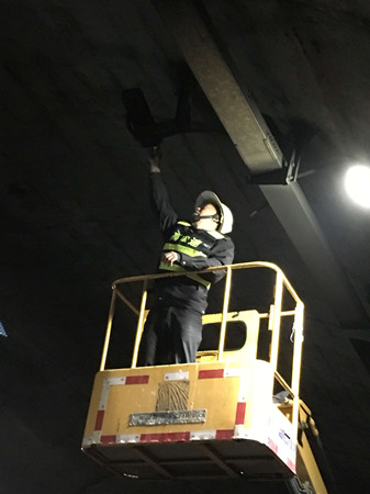 圖為黃土嶺隧道所內消防檢查 此次清洗工作,隧道所組織了兩個執(zhí)勤隊,分別對隧道內的監(jiān)控攝像頭、照明燈、標志燈進行清洗和維修保養(yǎng),匯通養(yǎng)護公司負責隧道壁、各類標志牌等方面的清洗。此外,隧道所還組織專人對隧道內消防設備進行檢查登記,全面摸排設備狀況,維修存在安全隱患的設備設施。 據(jù)統(tǒng)計,此次設備檢修共擦洗攝像鏡頭42只,照明燈1150盞,各類安全警示標志23套,滅火器471只。 經(jīng)過為期五天的清洗、保養(yǎng)、維修后,隧道內燈光通明、監(jiān)控清晰、機電設備使用可靠,有效地改善和美化了隧道通行環(huán)境,為春運提供安全保障。 金衛(wèi)軍