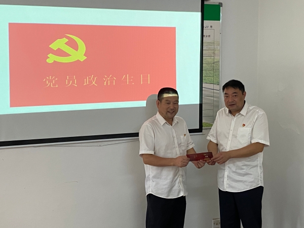 會議現(xiàn)場,黨支部書記李海福向李學(xué)來贈送“政治生日”賀卡,并送上“政治生日”祝福,讓李學(xué)來感受到來自黨組織的關(guān)懷。