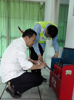 圖為檢查現(xiàn)場 該所副所長應(yīng)錦清帶領(lǐng)隊(duì)員仔細(xì)檢查了南北配電房的機(jī)電設(shè)施,隨后對管理房的干粉滅火器、隧道內(nèi)的泡沫滅火器,配電房、中控室的二氧化碳滅火器進(jìn)行逐一檢查,查看每個滅火器的壓力值、出氣管有無彎折、堵塞、損傷,壓把和閥體等金屬件有無變形和銹蝕,是否還在使用年限之內(nèi)等等,并做好相應(yīng)的檢查記錄。 陳智慧