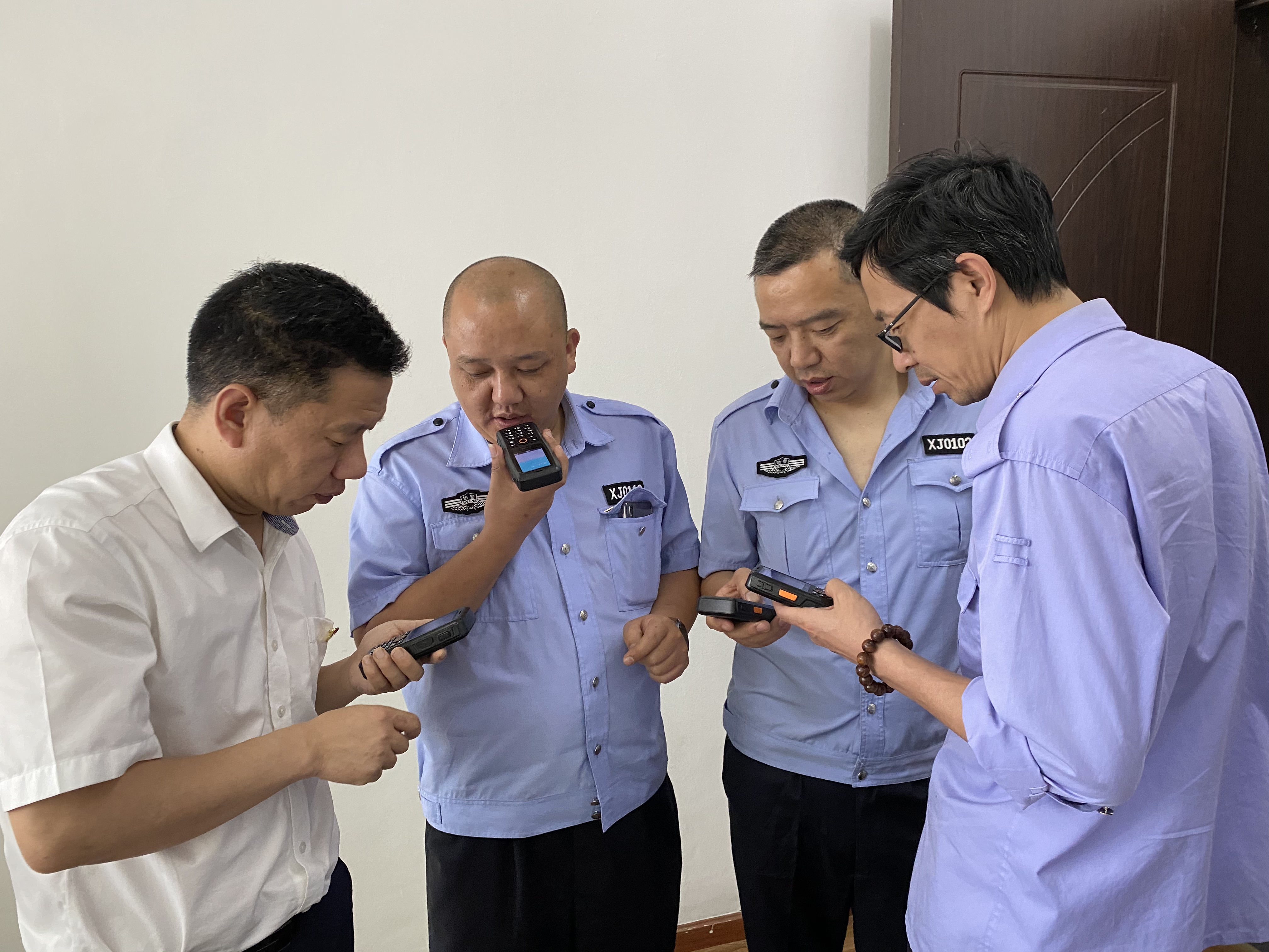 圖為廠家人員前來(lái)安裝對(duì)講機(jī) 當(dāng)日下午,為了讓執(zhí)勤隊(duì)員快速熟悉手機(jī)對(duì)講機(jī)的使用和管理,切實(shí)發(fā)揮對(duì)講機(jī)在實(shí)際工作中的作用,兩隧道所立即組織當(dāng)班隊(duì)員集中培訓(xùn)。大家認(rèn)真地學(xué)習(xí)對(duì)講機(jī)的操作規(guī)范,相互研討對(duì)講機(jī)的特點(diǎn),一邊操作示范,一邊了解屬性,以便更快掌握。