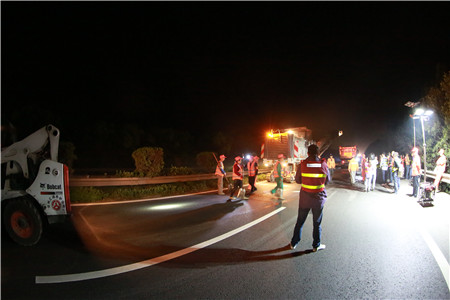 反復(fù)溝通,施工保質(zhì)保進(jìn)度。要在車流量極大的主干線上夜間順利施工,不僅對工程質(zhì)量、進(jìn)度負(fù)責(zé),更要對安全保暢負(fù)責(zé),不能有半點(diǎn)疏忽,不允許絲毫麻痹,而且涉及面極廣。不僅涉及工程部與施工監(jiān)理單位,更涉及到高速交警、路政及運(yùn)營管理等多個部門,前期工程部協(xié)交警、營運(yùn)部、監(jiān)理、施工等各相關(guān)單位就施工方案反復(fù)論證,一次次的討論與交流,計(jì)劃改了又改,從提前發(fā)布公告到路口設(shè)立標(biāo)志,從預(yù)警車輛安排到分流時間節(jié)點(diǎn),從搶險(xiǎn)預(yù)案到應(yīng)急小分隊(duì)建立,路面的反復(fù)測量,綠化養(yǎng)護(hù)的同期推進(jìn).....千頭萬緒,在于每一個細(xì)節(jié)的反復(fù)論證。一直到11號下午,確定了最合理有效的交通組織方案,施工前的安全和技術(shù)方面有了最后的交底,器械設(shè)備、材料、人員班組配備等一一清點(diǎn)得到最終確認(rèn)。