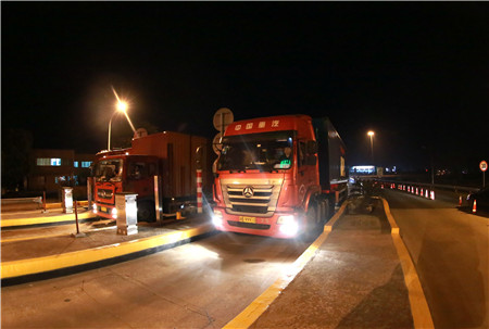 臺州南、溫嶺西收費(fèi)所,分流9點(diǎn)開始,由于夜間通行貨車居多,每輛需計(jì)重收費(fèi),且夾雜綠農(nóng)車,情況復(fù)雜,分流1個小時后出口車道已排成車燈長龍,壓力巨大?!奥房趨f(xié)警一定要守住第一道防線,不能讓任何車輛進(jìn)入!”富有經(jīng)驗(yàn)的所長王益民已在車道上與交通協(xié)管員一起指揮疏導(dǎo)交通了。從晚上10點(diǎn)到凌晨6點(diǎn),持續(xù)奮戰(zhàn)8個小時,在有限的具有稱重能力車道的情況下,臺州南、溫嶺西共完成了5千多輛車的收費(fèi)工作,流量相比平時增加一倍。