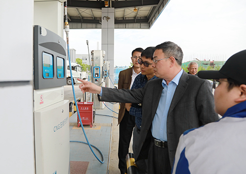 圖為公司領導陳文波在臺州市浙能油氣發(fā)展有限公司公交綜合站加氣(加油)站調研 “公交車、出租車一次可以加多少公斤?加足一次可以開多少公里?”在臺州市浙能油氣發(fā)展有限公司公交綜合站加氣(加油)站,陳文波詳細詢問站內工作人員,當得知公交車一次可加100公斤、出租車一次能加10多公斤并能開200多公里時,陳文波表示了贊許。該加氣(加油)站目前日均加氣量約9噸,從2018年7月2日至今10個月的運營,共為100多輛LNG公交車和500多輛CNG出租車提供加氣服務。陳文波指出,加氣站要借浙江省民生工程中增加綠色能源公交車的政策東風,積極開發(fā)拓寬天然氣用戶,努力提升銷售量。