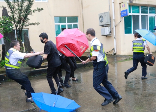 隨后,多名參演員工冒雨模擬收費(fèi)崗?fù)ず土嘘?duì)下崗遭遇“歹徒”搶劫的情景開展防盜搶演練。現(xiàn)場(chǎng),2名蒙面歹徒執(zhí)仿真刀、軟棍威脅收費(fèi)員交出現(xiàn)金,危機(jī)之中,收費(fèi)站立即啟動(dòng)應(yīng)急處置預(yù)案并報(bào)警求助,收費(fèi)員有效與歹徒周旋,應(yīng)急處置組人員迅速攜鋼叉、橡膠棒、勞動(dòng)工具等赴現(xiàn)場(chǎng)支援,值班領(lǐng)導(dǎo)、收費(fèi)班長(zhǎng)、監(jiān)控員合力協(xié)作應(yīng)對(duì)歹徒,防盜搶演練順利結(jié)束。