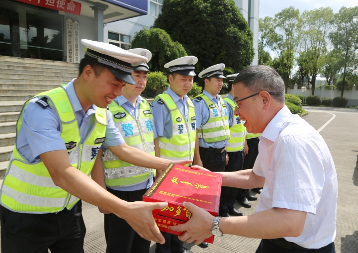 與此同時,集團總工程師江輝帶領工程部及收費所相關人員到院橋派出所和交警隊開展“送清涼”活動。江輝代表臺州高速集團對當地派出所和交警隊的履職盡責、通力協(xié)作表示衷心感謝,并叮囑他們在高溫天氣要做好防暑降溫工作。