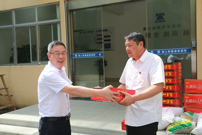 “這么熱的天氣,大家都辛苦啦!感謝你們的辛苦付出,高溫工作,一定要注意避免中暑。”集團副總經理陳保衛(wèi)、羅小將、工會主席項義超、征費部負責人等相關人員,到房產公司、大溪嶺隧道所、溫嶺西、臺州南等收費所,為一線員工送上消暑物資,慰問堅守在酷暑下的工作人員。