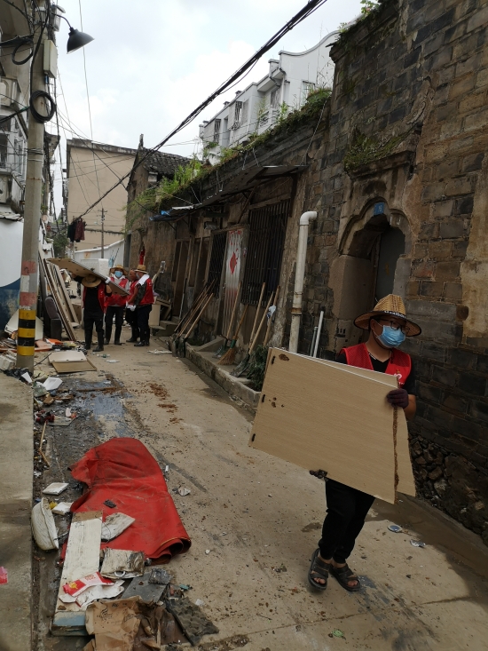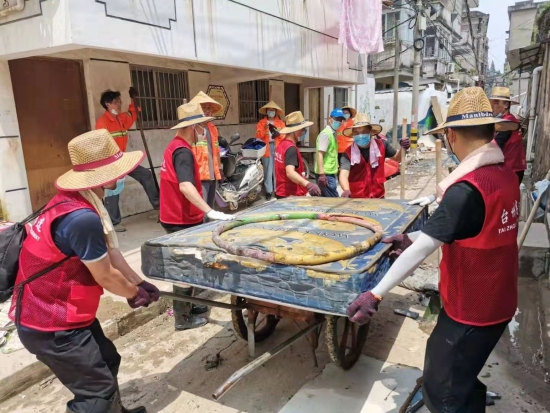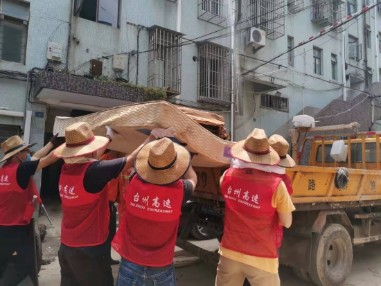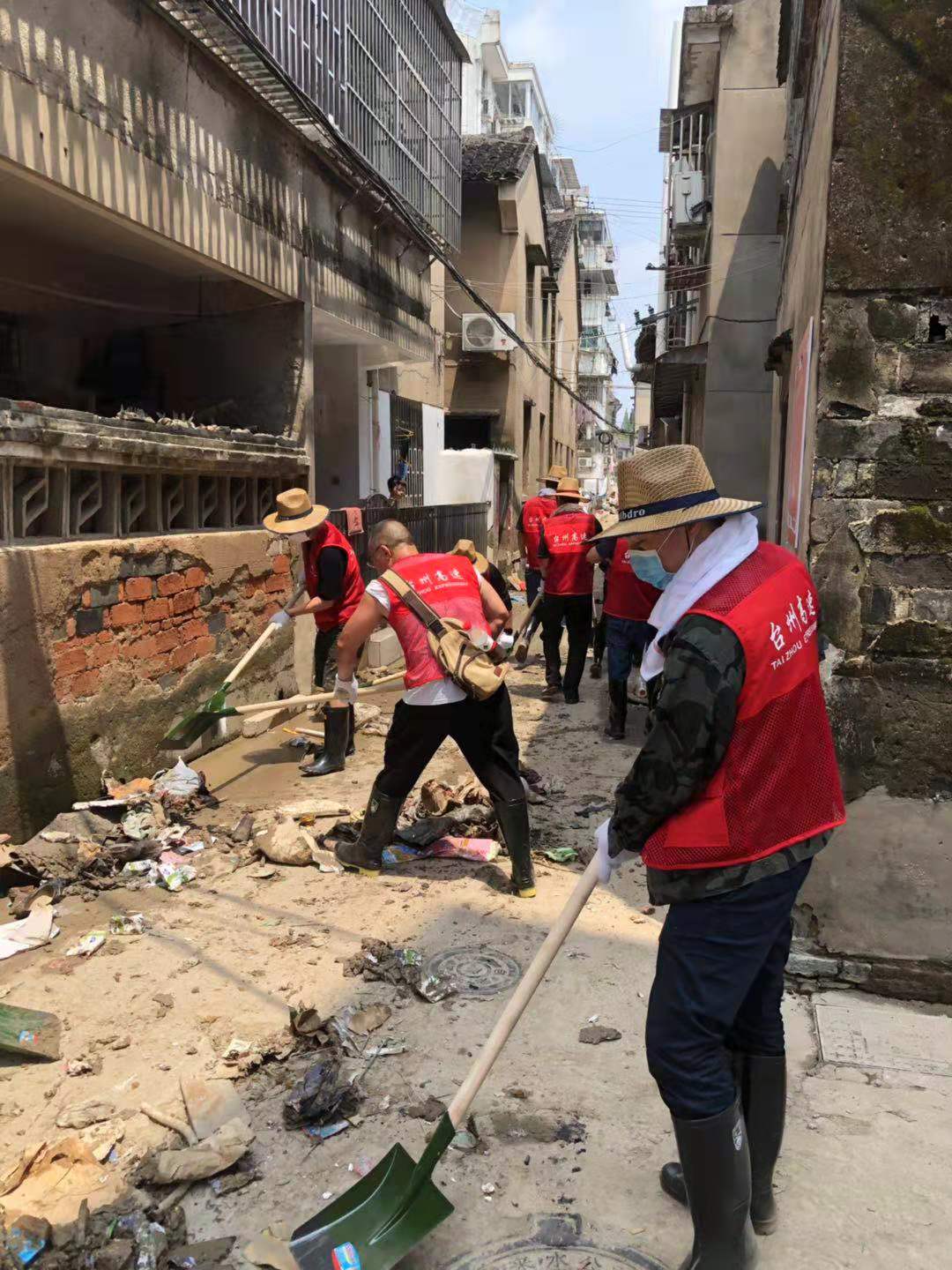圖為臺州高速志愿者支援災區(qū)重建現(xiàn)場 在臨海古城赤城路米篩巷,臺州高速集團的志愿者們頂著毒辣的太陽,不怕臟不怕累,積極為災后重建貢獻力量,清理路面淤泥、垃圾,保障路面清潔以及道路順暢。 真情傳遞溫暖 愛心匯聚力量, 面對災后重建, 臺州高速集團用實際行動, 彰顯鐵軍精神, 承擔社會責任, 展現(xiàn)使命擔當。