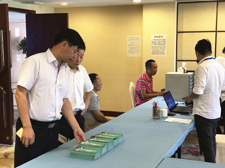 陳保衛(wèi)認真查看了仙居收購點從入口到辦理點的指示標牌,并向工作人員詢問了該收購點所在酒店的知名度。經(jīng)工作人員介紹,仙居東方大酒店是仙居當?shù)厝朔浅J煜さ木频?,還未發(fā)生過股東找不到收購點而打電話詢問的事。陳保衛(wèi)聽后面帶微笑,連連點頭。