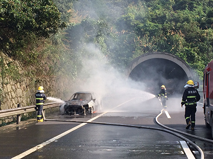 7月14日下午4點18分,一輛轎車在塘嶺隧道寧向出口一百米處自燃起火。轎車被燒成空殼,所幸火災(zāi)沒有造成人員傷亡。