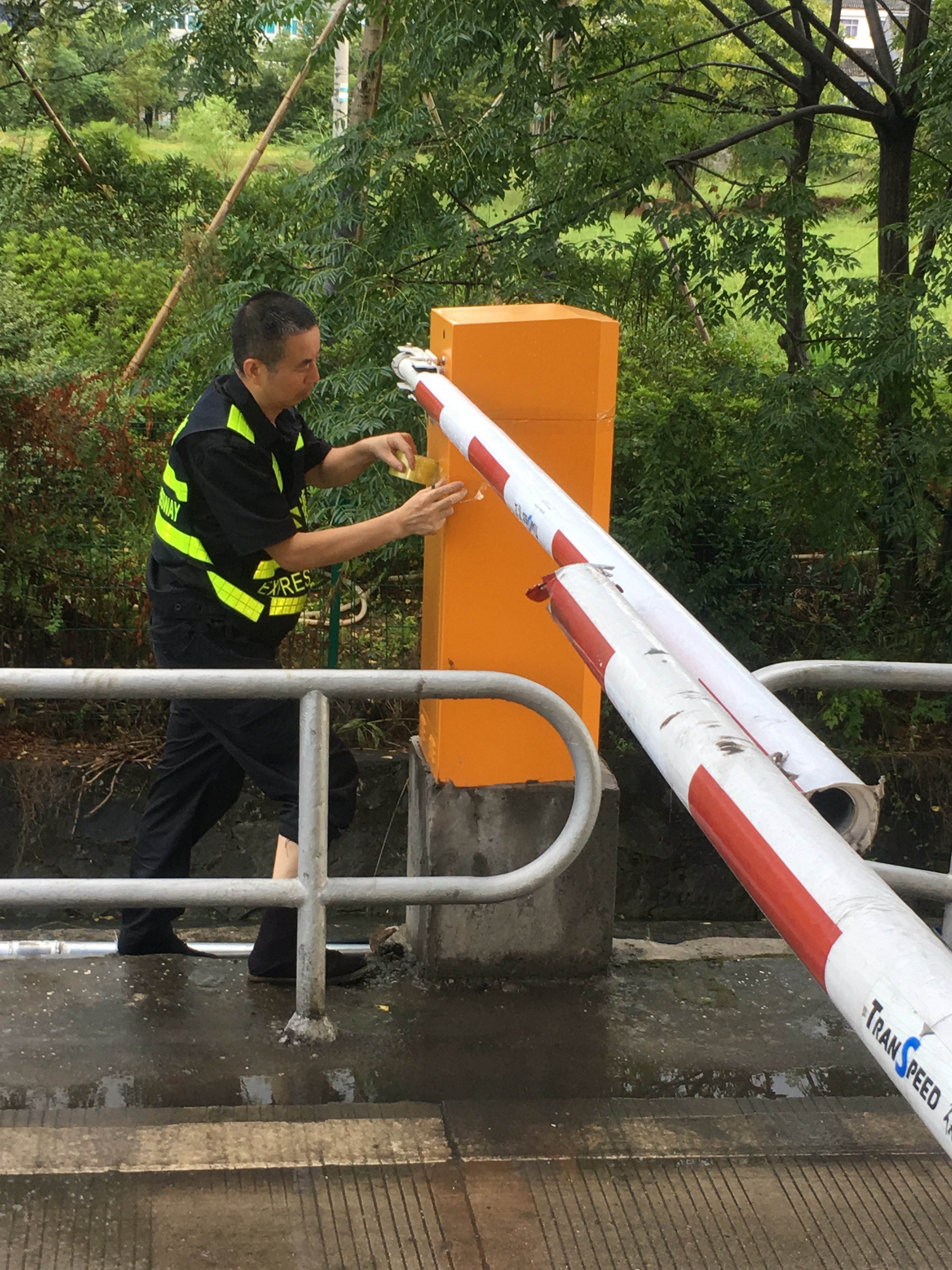 增強(qiáng)機(jī)電設(shè)備防水措施。集團(tuán)收費(fèi)站有很多機(jī)電設(shè)備直接安裝在戶外,因外層有開關(guān)柜保護(hù),一般雨水是無法滲透的。可一旦遇上臺(tái)風(fēng)雨等惡劣天氣就很難確保內(nèi)部設(shè)備不會(huì)被打濕,尤其是計(jì)量柜里面的計(jì)重設(shè)備,一旦短路損壞會(huì)立即造成車輛擁堵。因此,剛完成高桿燈下降工作的中心隊(duì)員顧不上休息,又馬不停蹄趕赴收費(fèi)所將計(jì)量柜、欄桿機(jī)等重要設(shè)備用封帶紙進(jìn)行密封處理,不漏過任何一處可能進(jìn)水的地方,大大增強(qiáng)了這些設(shè)備防水性能。