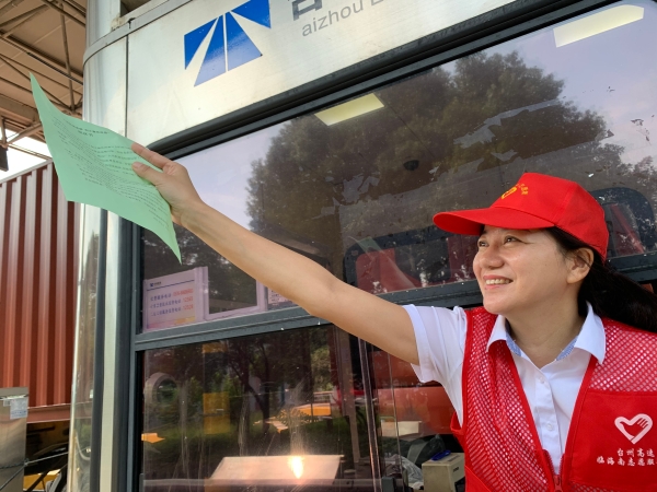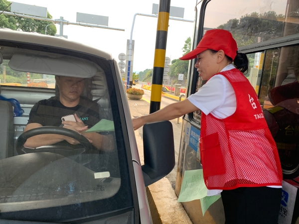 910上午,臨海南收費(fèi)所志愿者身穿耀眼的紅馬甲,在車(chē)道出入口向過(guò)往司乘人員發(fā)放“弘揚(yáng)傳統(tǒng)美德,制止餐飲浪費(fèi)”倡議書(shū),號(hào)召?gòu)V大司機(jī)從自己做起、從現(xiàn)在做起、從點(diǎn)滴做起,自覺(jué)抵制餐飲浪費(fèi),積極號(hào)召身邊的人傳承勤儉節(jié)約的良好家風(fēng),向全社會(huì)營(yíng)造“浪費(fèi)可恥、節(jié)約為榮”的深厚氛圍。