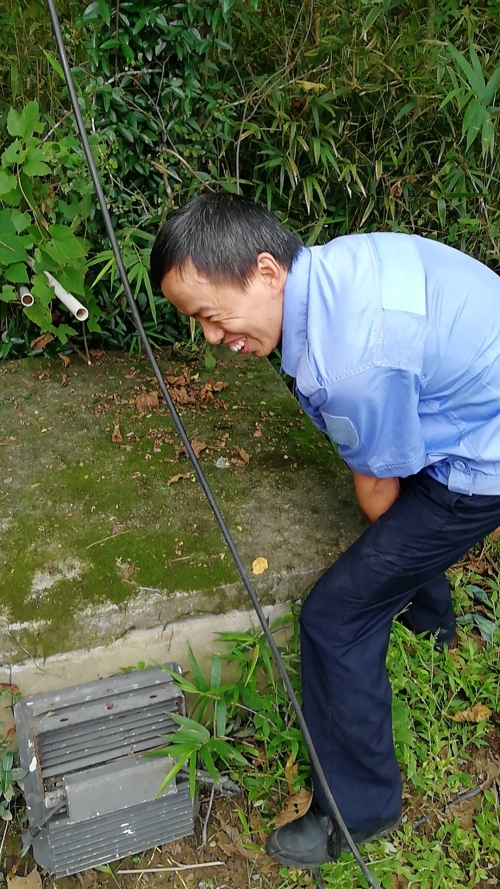 9月23日早上8點(diǎn)45分,中控員發(fā)現(xiàn)大溪嶺隧道北高位水池圖像模糊,照明燈不亮了。 為保障隧道消防安全,中控員對(duì)消防水池的水位需時(shí)時(shí)關(guān)注,萬一水池漏水無法及時(shí)查看,如遇火災(zāi),消防水供應(yīng)不上,后果不堪設(shè)想。隊(duì)長(zhǎng)意識(shí)到事情的嚴(yán)重性,即刻安排電工湯寧光和陳幸趕往北面山上的高位水池位置。初秋的山上植物茂盛,原來通往水池的小路早已淹沒在雜草間,隊(duì)員們提著工具,憑著記憶找小路,單手撥開雜草往山上走,到達(dá)高位水池之后,他們分工協(xié)作,一邊檢查線路,一邊抬開井蓋并下到水池檢查照明燈,經(jīng)過檢查后發(fā)現(xiàn)只是線路有點(diǎn)松動(dòng),陳幸馬上對(duì)線路進(jìn)行加固。