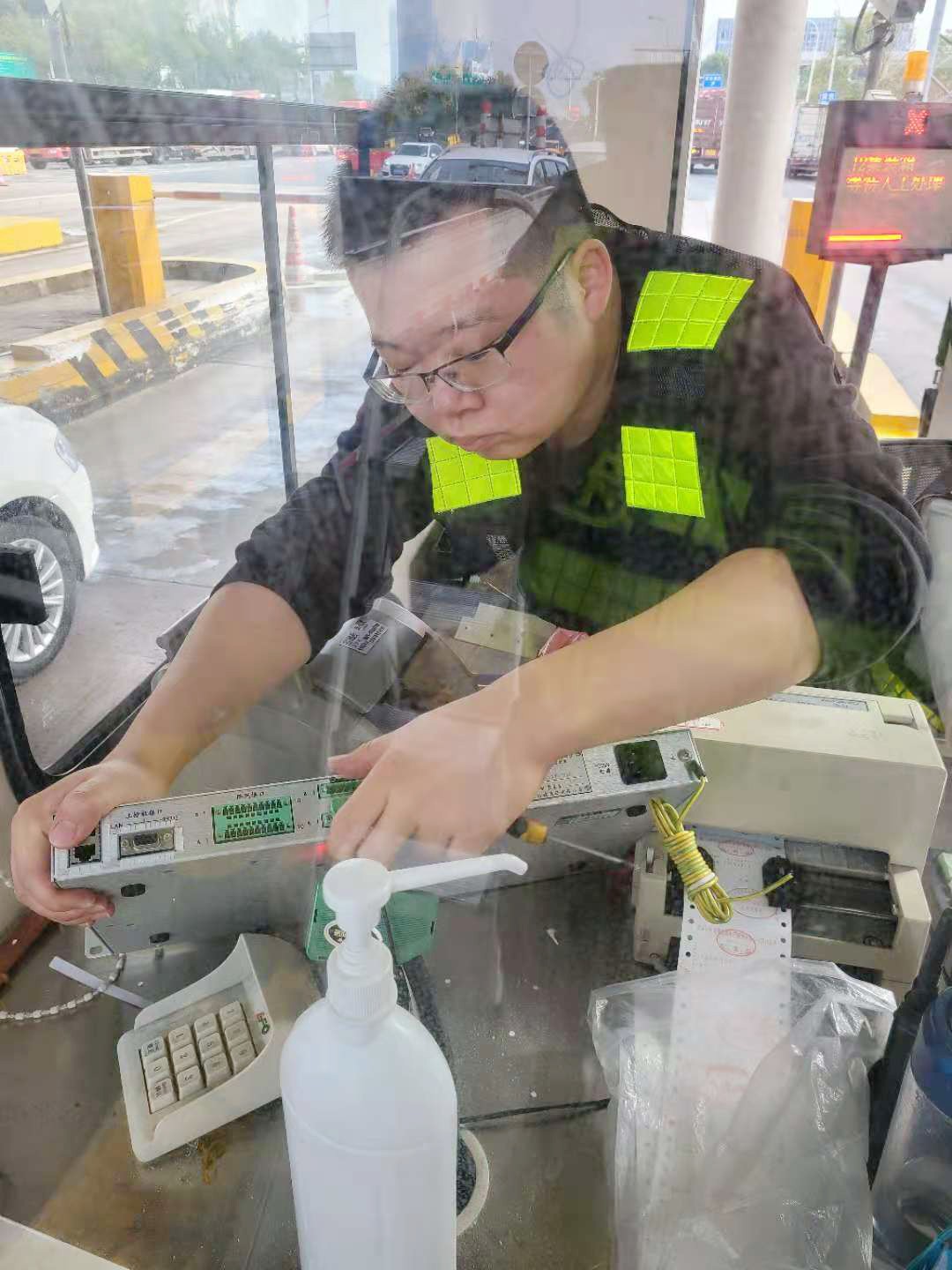“咦,崗?fù)ぷ郎系倪@個扁長形設(shè)備哪去了,忽然感覺桌面整潔了好多!”剛來交班的臺州收費所收費員李靜一臉疑惑,“拿掉了這個設(shè)備,ETC車輛還能正常通行嗎?”