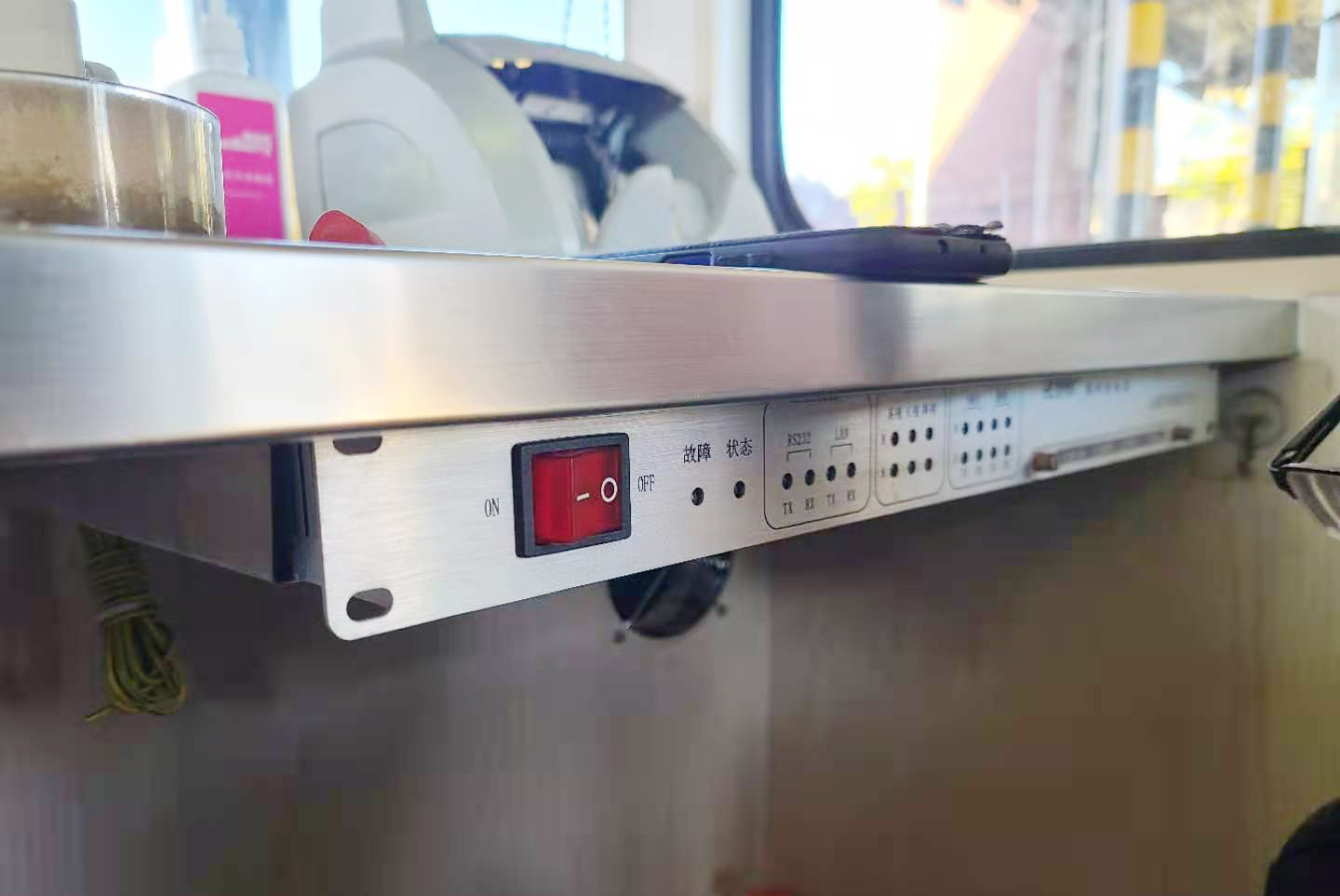 經(jīng)過中心技術(shù)人員集思廣益和反復(fù)討論,他們決定利用不銹鋼鐵片作支架,用自攻螺絲將其固定在桌面下方,隨后將控制器移至支架上,最后再在控制器后部取個圓孔,將原先桌面上的電源線、數(shù)據(jù)線等通過孔洞連接到設(shè)備上。定方案后,大家著手定制購買相應(yīng)材料和工具,不到3天時間,集團(tuán)5個收費站共計39個天線控制器全部完成“搬家”。