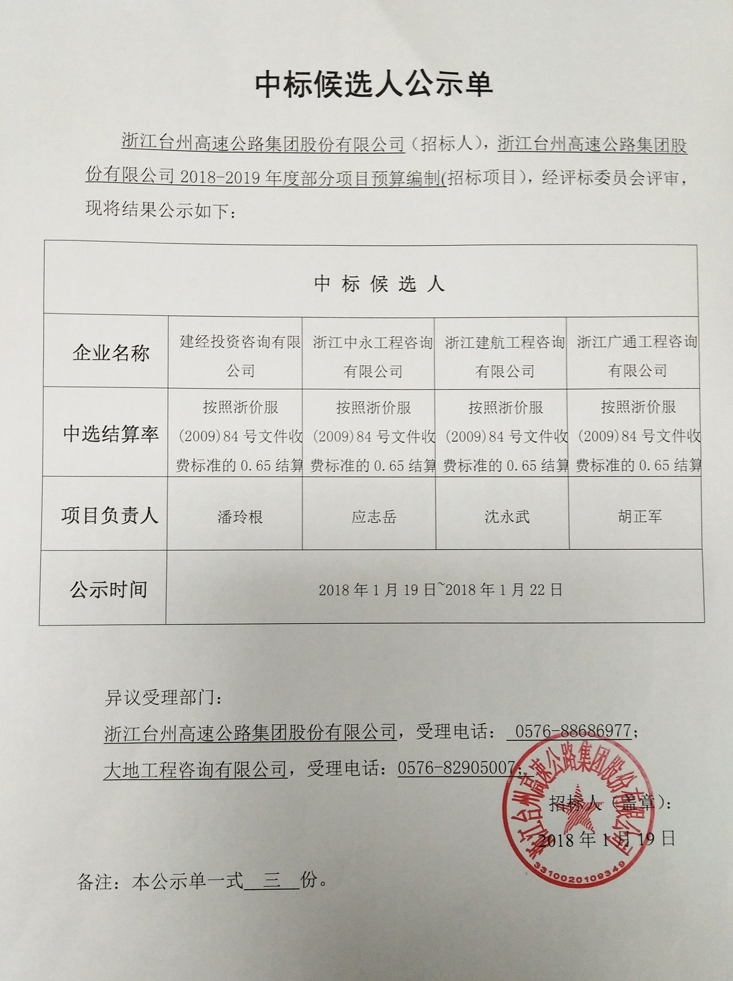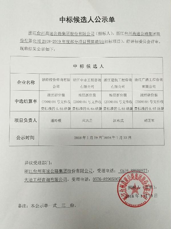 2018-2019年度部分項目預(yù)算編制中標(biāo)候選人公示單